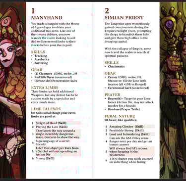 Spreads for my Unannounced, Unnamed RPG project.