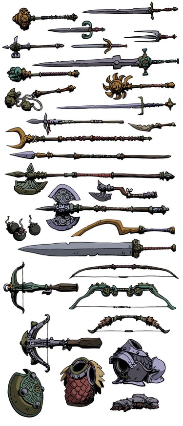Went a little crazy designing a massive sheet of exotic weapons for my game. Not even sure I'll use them as-is but it was still a great exercise! I've designed so many props for games over the years, there's something really cathartic about just sitting down and churning through dozens of these.